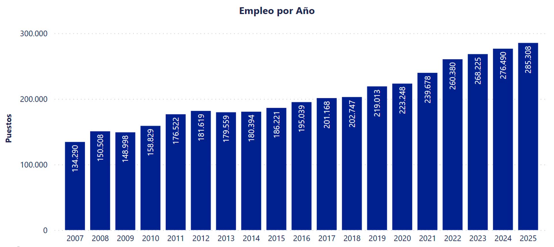 Pero el impacto del sector va mucho más allá del frente externo. En términos de empleo, la Economía del Conocimiento superó en 2025 los 285.000 puestos de trabajo formales, de acuerdo con datos basados en el Sistema Integrado Previsional Argentino. Esto implica la creación de 9.000 nuevos empleos en el último año y 17.000 desde 2023, evidenciando una expansión sostenida incluso en contextos desafiantes.